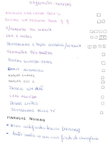 Esqueçam os quadradinhos, são rabiscos porque estava num local onde não tinha mais nada para fazer. Já tenho os meus objectivos/tarefas delineados para este mês.