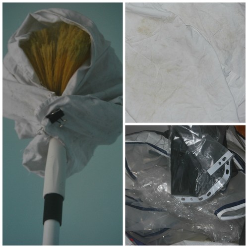- Coloquei um pano seco numa vassoura e limpei o pó das paredes (um extra que aproveitei por fazer);